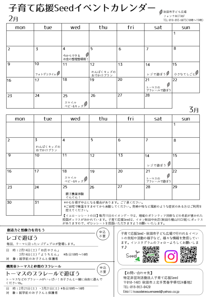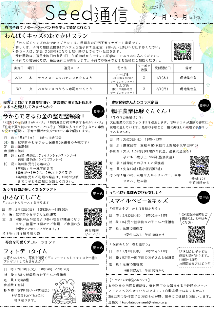 子育て応援Seedや秋田市子ども広場のイベント情報を掲載しています。