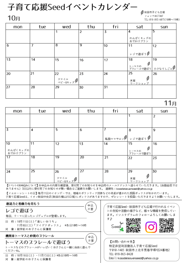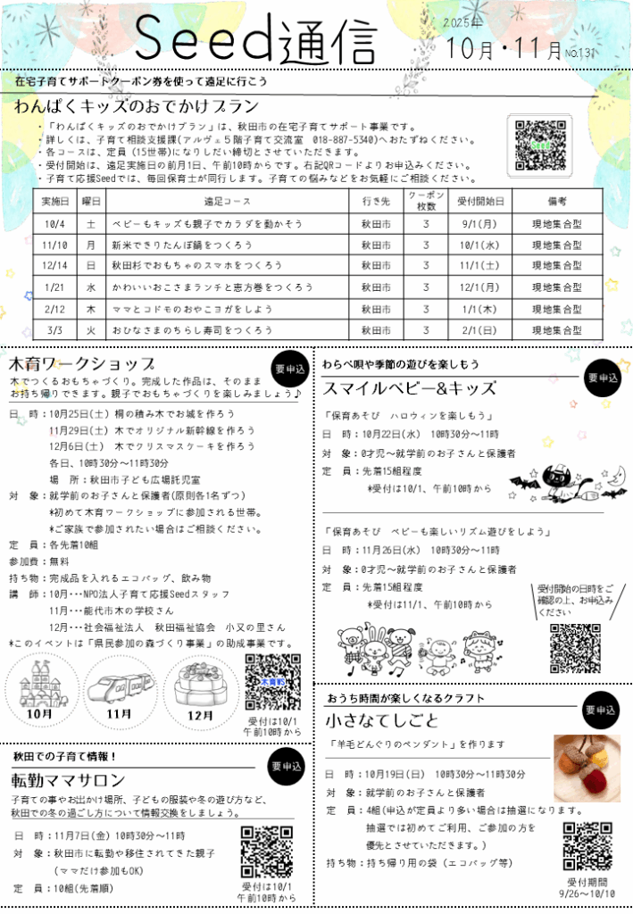 子育て応援Seedや秋田市子ども広場のイベント情報を掲載しています。