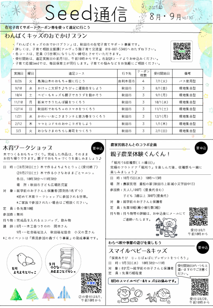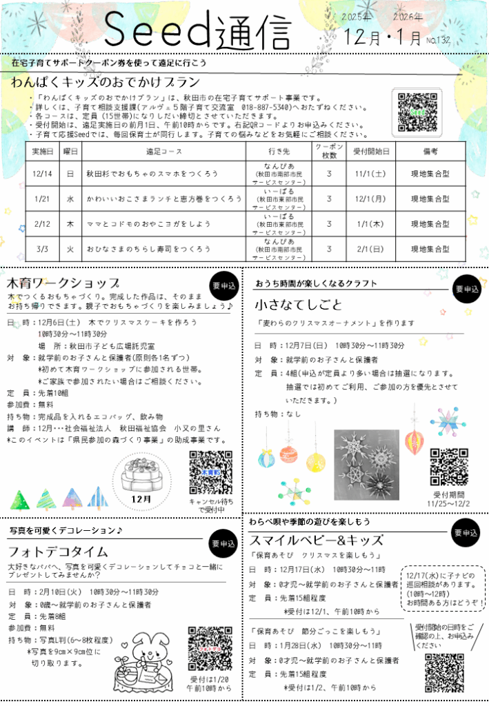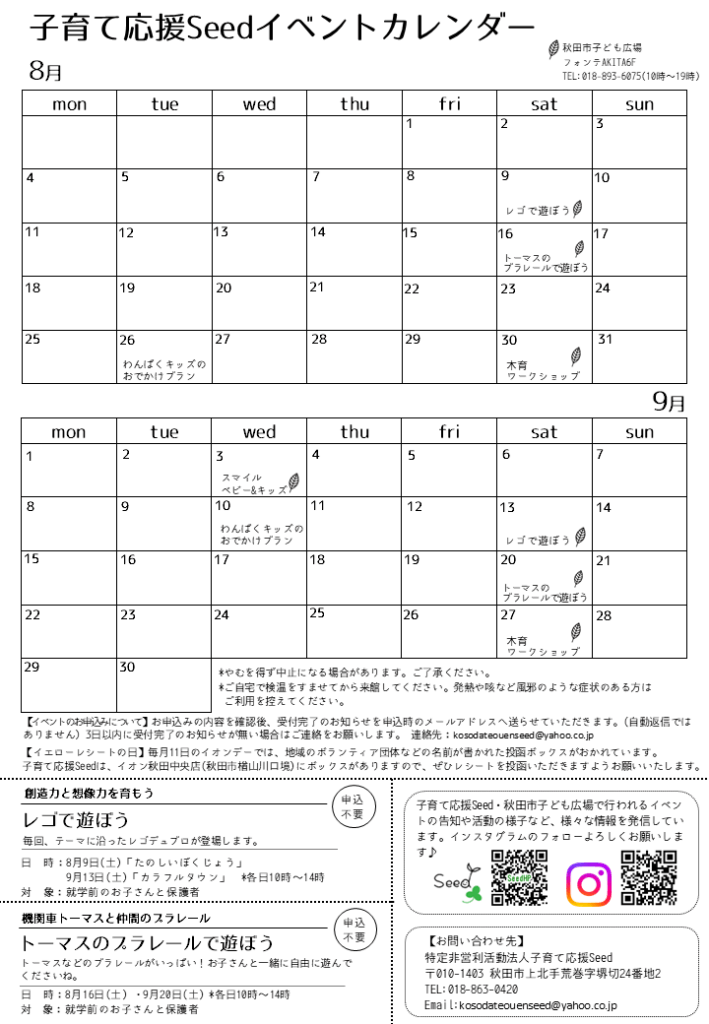 子育て応援Seedや秋田市子ども広場のイベント情報を掲載しています。